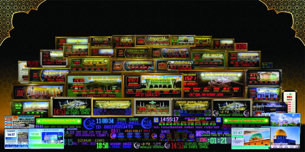Produsen jam masjid yang dikerjaan oleh tehnisi profesional berkeahlian tinggi yang sangat memperhatikan detail-detail kecil. Menggunakan part pilihan dan bahan berkualitas sehingga menghasilkan produk lebih stabil dan awet demi kepuasan customer. Solusi Tepat Untuk Waktu Sholat.